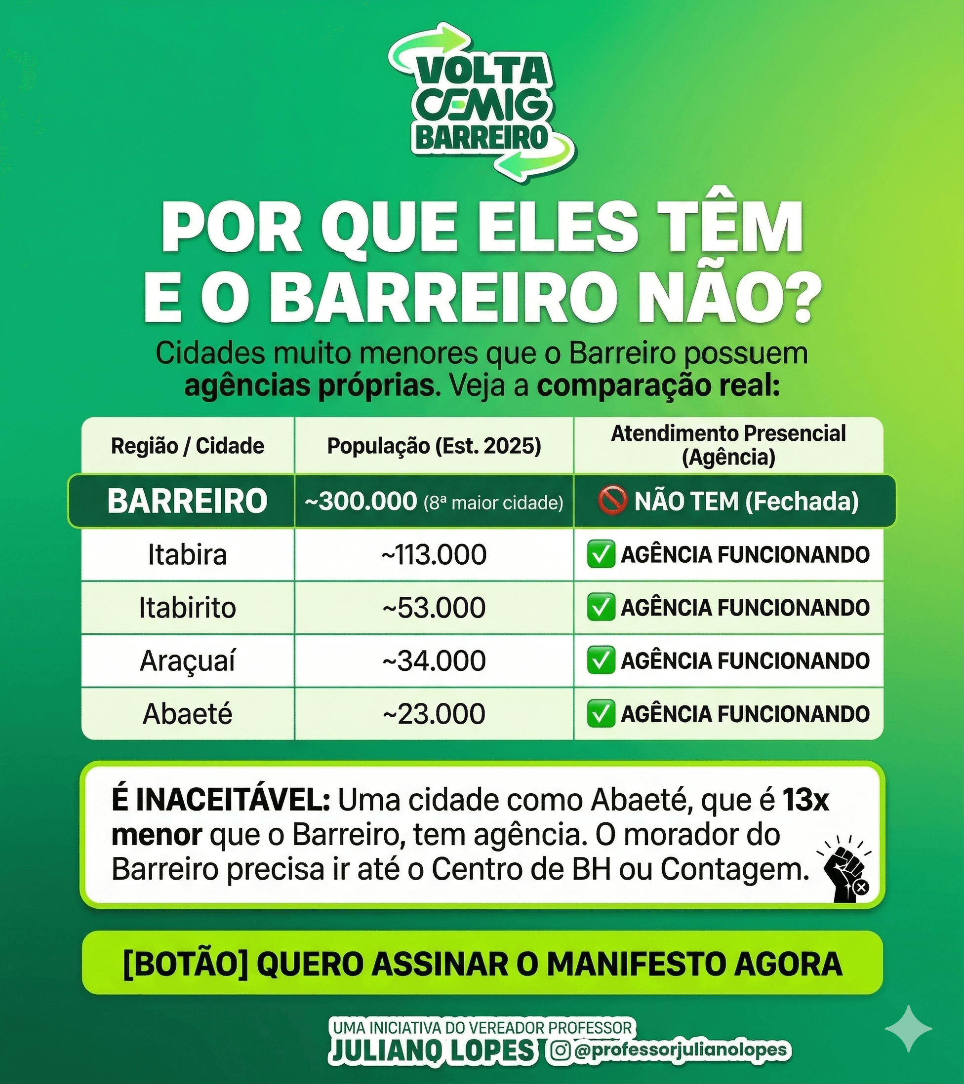 O Barreiro já teve agência. Eles fecharam e nunca mais abriram.